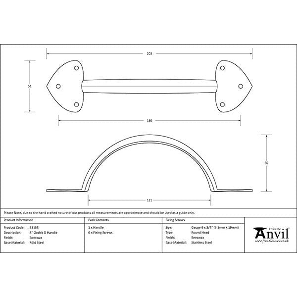 From The Anvil - 8" Gothic D Handle - Beeswax - 33153