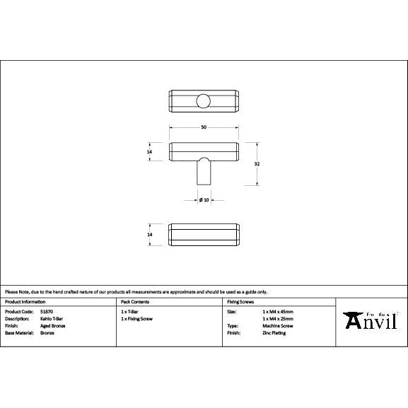 From The Anvil - Aged Bronze Kahlo T-Bar - 51870