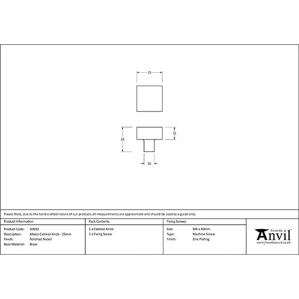 From The Anvil - Albers Cabinet Knob - 25mm - Polished Nickel - 50693