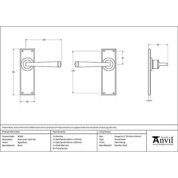 From The Anvil - Avon Lever Latch Set - Aged Brass - 90362