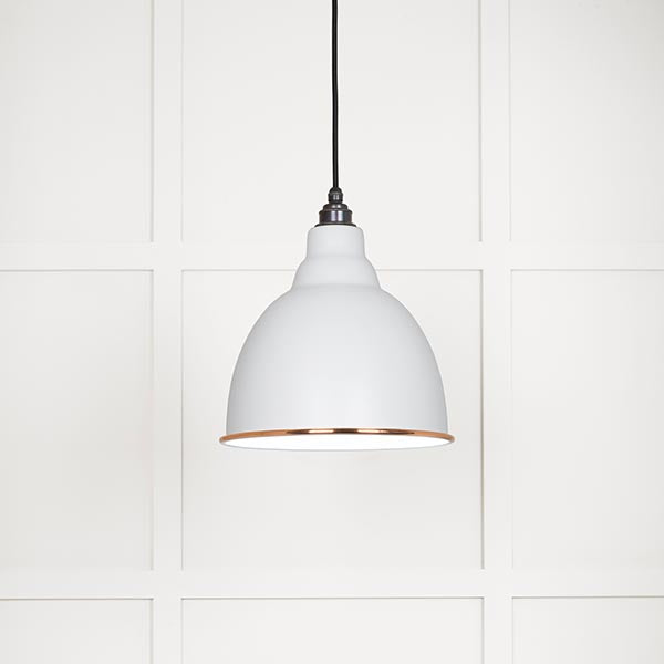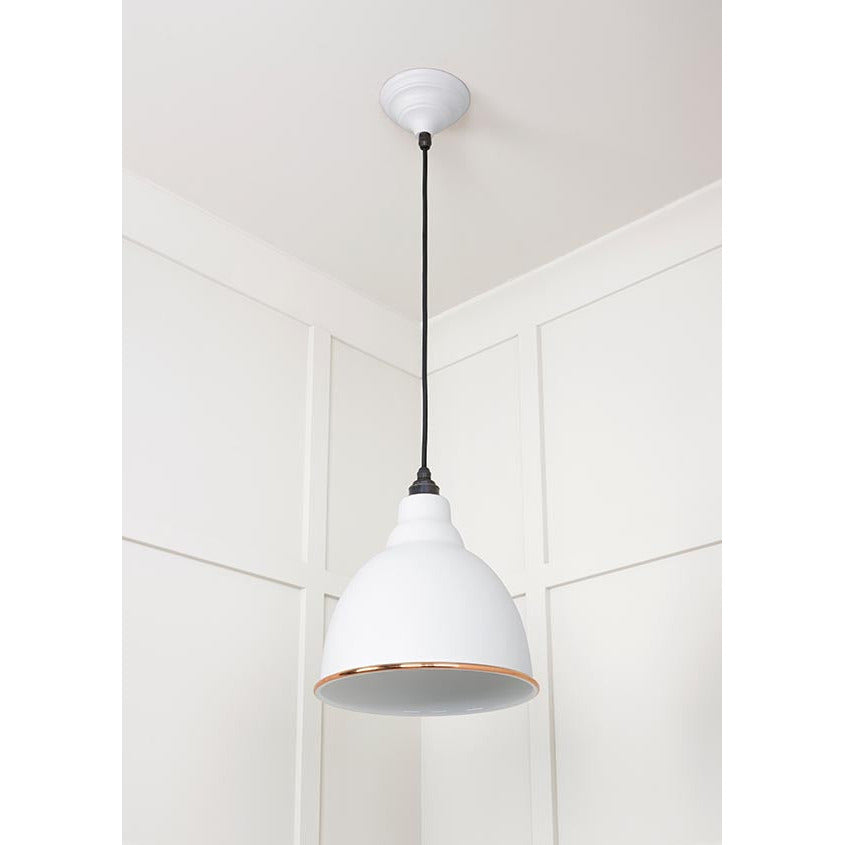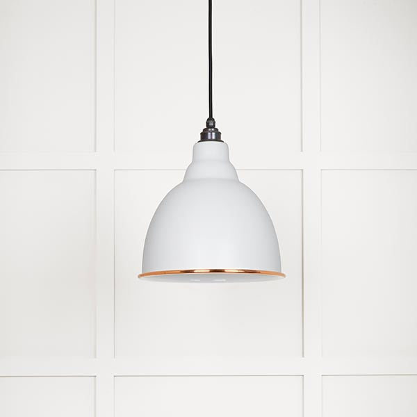 Our Accent pendants are spun from solid copper. When lit, the white gloss interior bounces light and creates a radiant glow, the brightest of our finishes. These pendants work well with a warmer bulb.