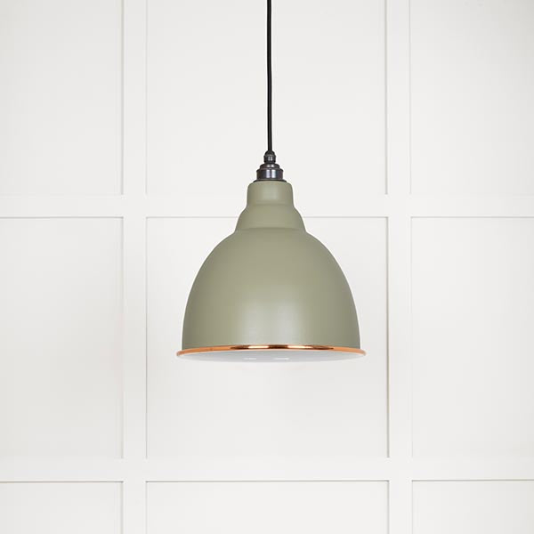 Our Accent pendants are spun from solid copper. When lit, the white gloss interior bounces light and creates a radiant glow, the brightest of our finishes. These pendants work well with a warmer bulb.