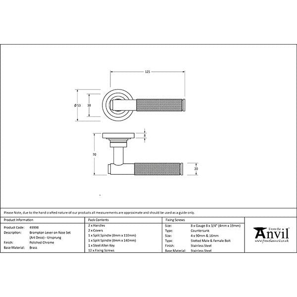 From The Anvil - Brompton Lever on Rose Set (Art Deco) - Unsprung - Polished Chrome - 49998