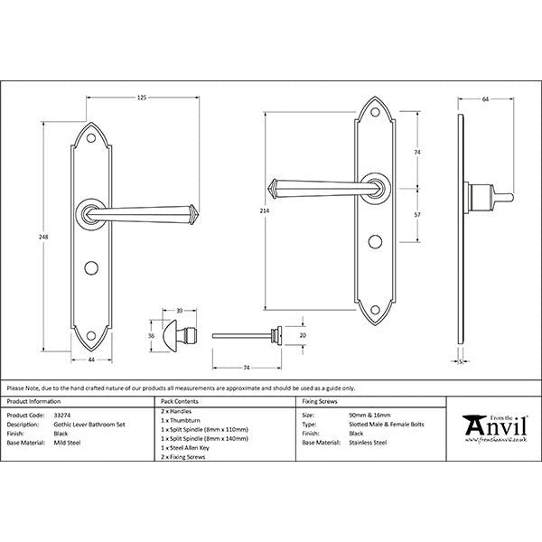 From The Anvil - Gothic Lever Bathroom Set - Black - 33274