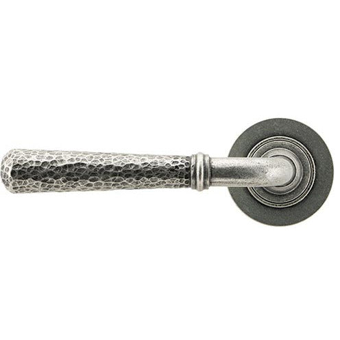 From The Anvil - Hammered Newbury Lever on Rose Set (Plain) - Pewter Patina - 45655