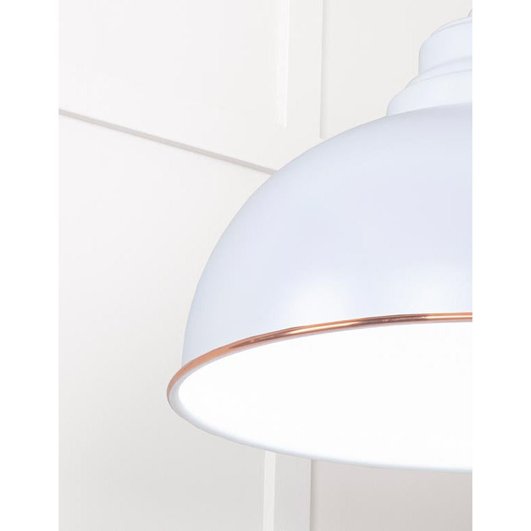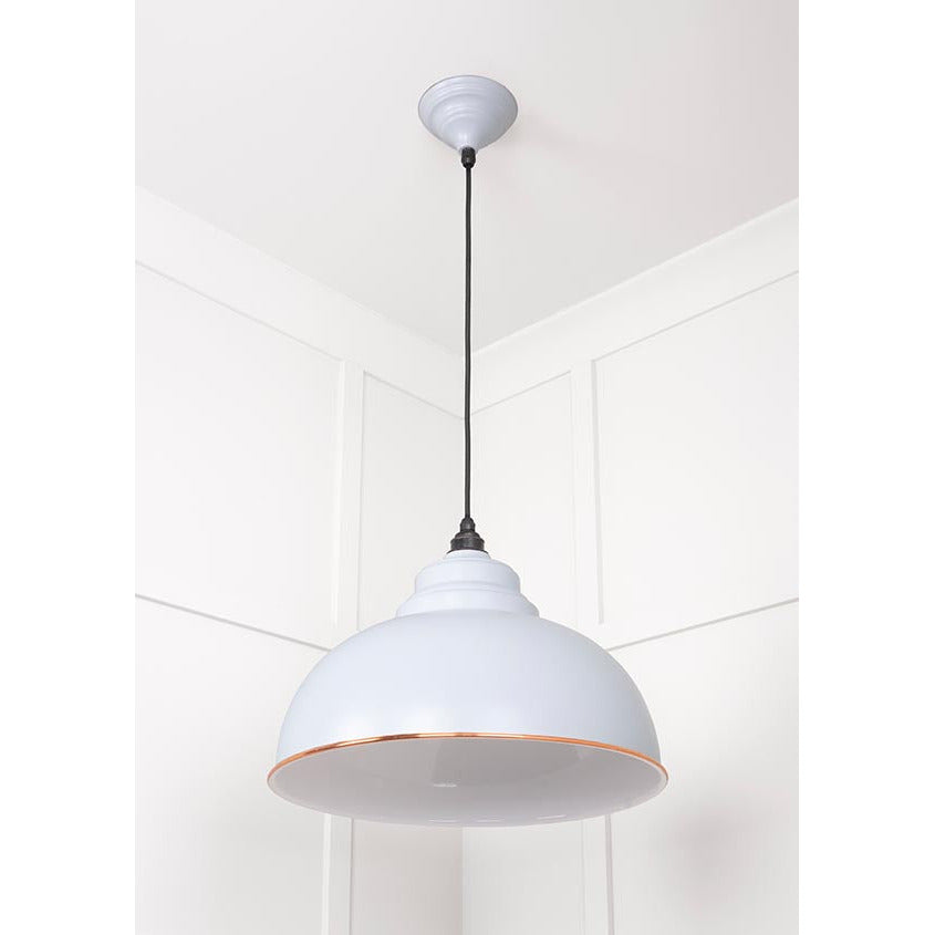 Our Accent pendants are spun from solid copper. When lit, the white gloss interior bounces light and creates a radiant glow, the brightest of our finishes. These pendants work well with a warmer bulb.