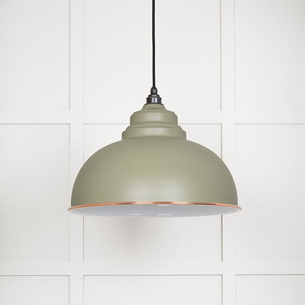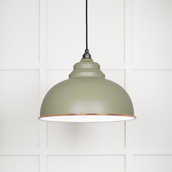 Our Accent pendants are spun from solid copper. When lit, the white gloss interior bounces light and creates a radiant glow, the brightest of our finishes. These pendants work well with a warmer bulb.