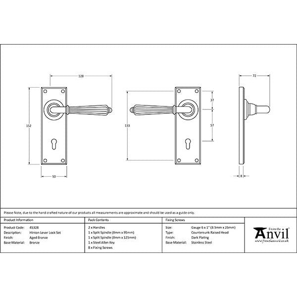 From The Anvil - Hinton Lever Lock Set - Aged Bronze - 45328