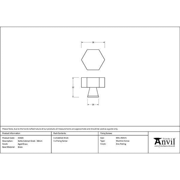 From The Anvil - Kahlo Cabinet Knob - 38mm - Aged Brass - 50503