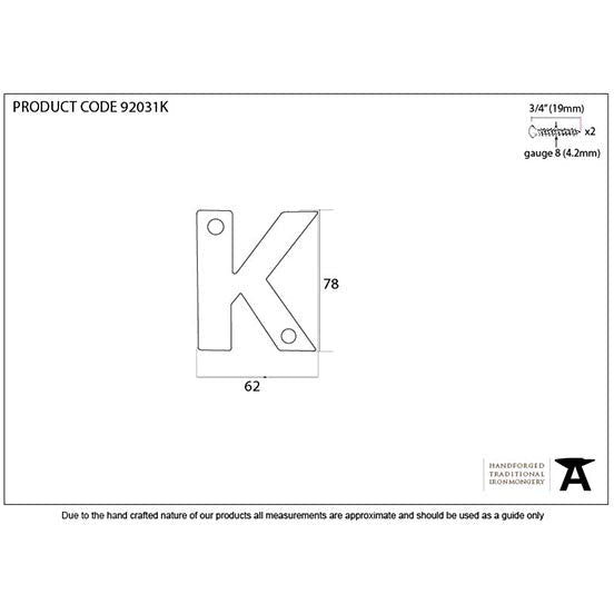 From The Anvil - Letter K - Polished Bronze - 92031K