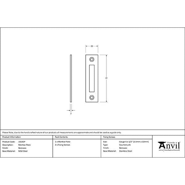 From The Anvil - Mortice Plate - Beeswax - 33140P