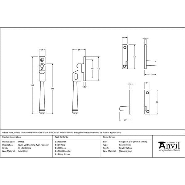 From The Anvil - Night-Vent Locking Avon Fastener - Pewter Patina - 90391