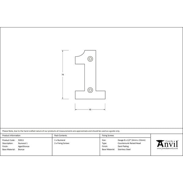 From The Anvil - Numeral 1 - Aged Bronze - 92011