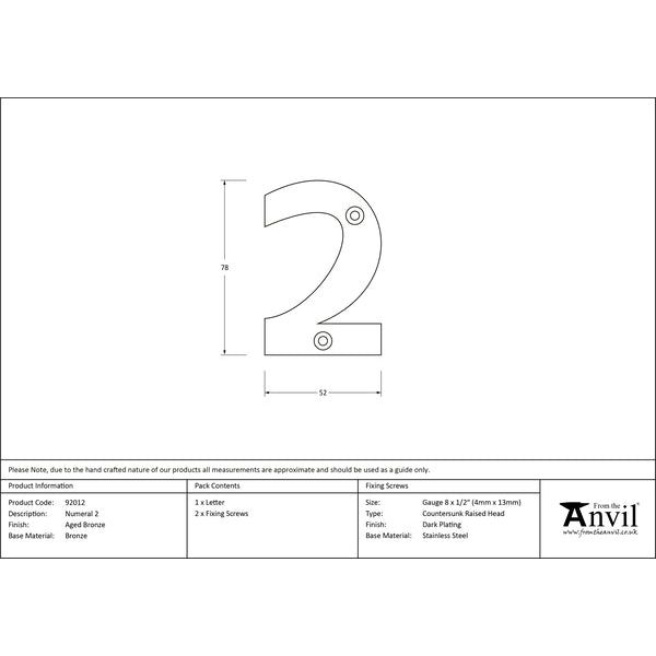 From The Anvil - Numeral 2 - Aged Bronze - 92012