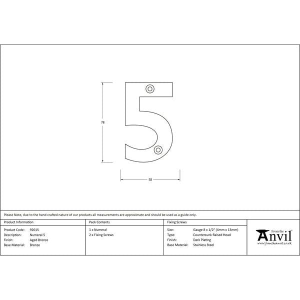 From The Anvil - Numeral 5 - Aged Bronze - 92015
