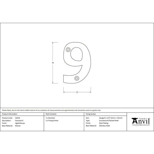 From The Anvil - Numeral 9 - Aged Bronze - 92019