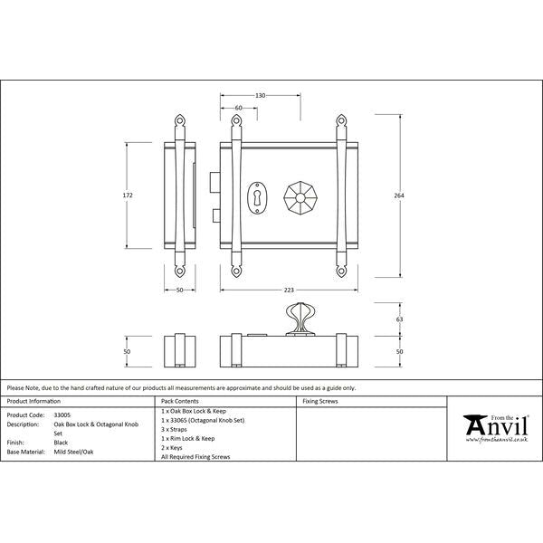 From The Anvil - Oak Box Lock & Octagonal Knob Set - Black - 33005