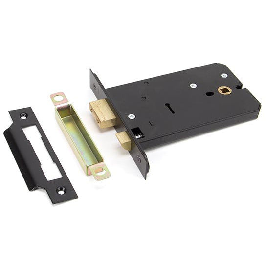 Rim locks are fitted to the surface of the door rather than being morticed in, along with a surface mounted keep that should be fitted to the door frame.