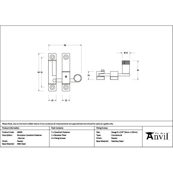 From The Anvil - Pewter Brompton Quadrant Fastener - Narrow - 46605