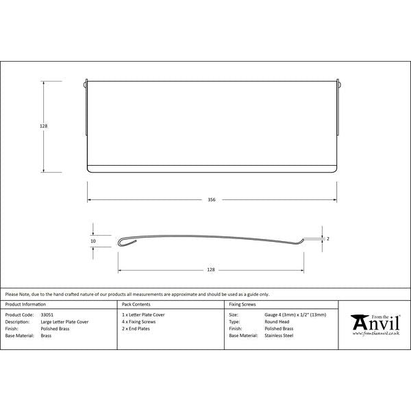 From The Anvil - Polished Brass Large Letter Plate Cover - Polished Brass - 33051