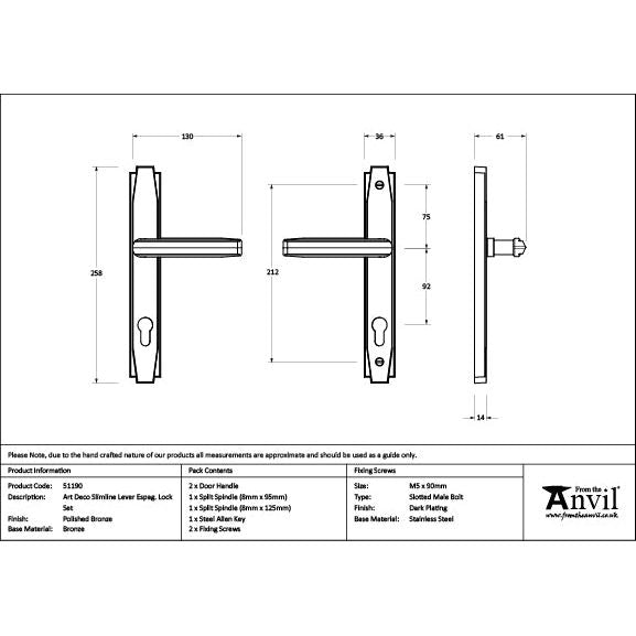 From The Anvil - Polished Bronze Art Deco Slimline Lever Espag. Lock Set - Polished Bronze - 51190
