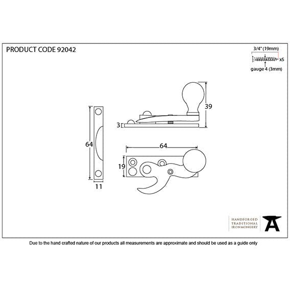From The Anvil - Prestbury Sash Hook Fastener - Aged Brass - 92042