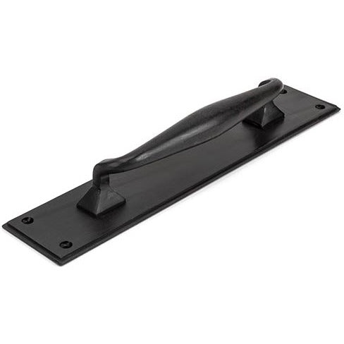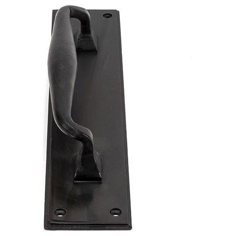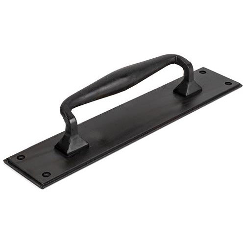 Our pull handle on backplate is part of our Blacksmith collection and features an imposing design that will suit any large entrance door or commercial setting.