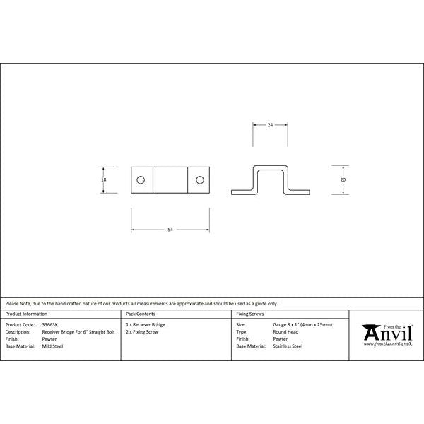 From The Anvil - Receiver Bridge For 6" Straight Bolt - Pewter Patina - 33663K