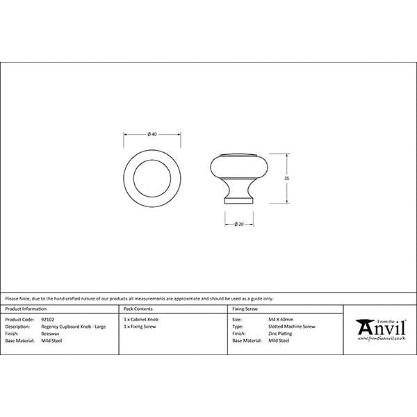 From The Anvil - Regency Cabinet Knob - Large - Beeswax - 92102