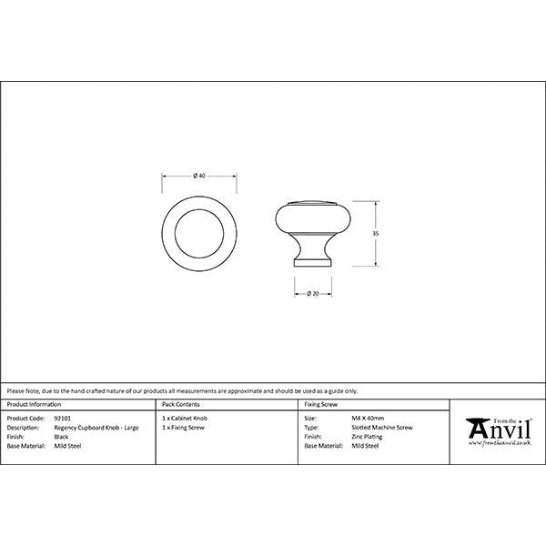 From The Anvil - Regency Cabinet Knob - Large - Black - 92101