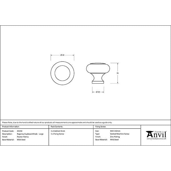 From The Anvil - Regency Cabinet Knob - Large - Pewter Patina - 45150