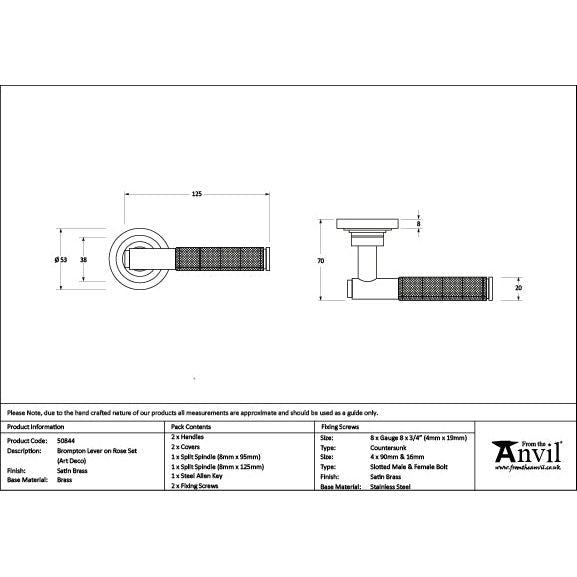 From The Anvil - Satin Brass Brompton Lever on Rose Set (Art Deco) - Satin Brass - 50844
