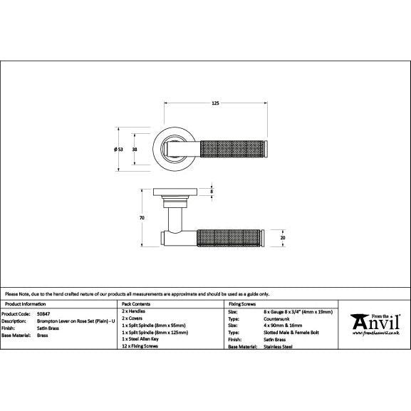 From The Anvil - Satin Brass Brompton Lever on Rose Set (Plain) - Unsprung - Satin Brass - 50847
