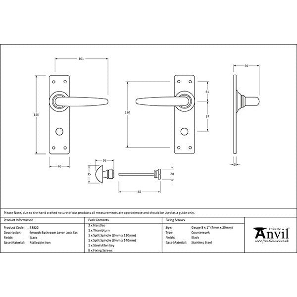 From The Anvil - Smooth Lever Bathroom Set - Black - 33822