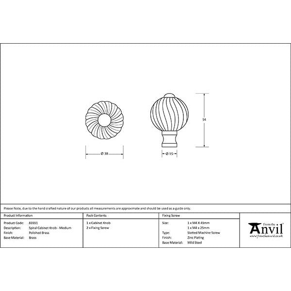 From The Anvil - Spiral Cabinet Knob - Medium - Polished Brass - 83551