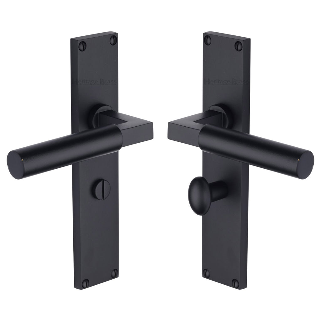 Heritage Brass Bauhaus Bathroom Set Door Handle on 200mm Plate Matt Black finish - VT6330-BKMT