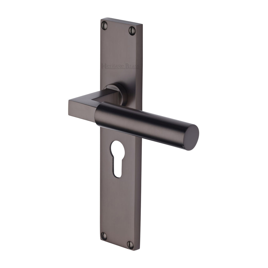 Heritage Brass Bauhaus Euro Profile Door Handle on 200mm Plate Matt Bronze finish - VT6348-MB