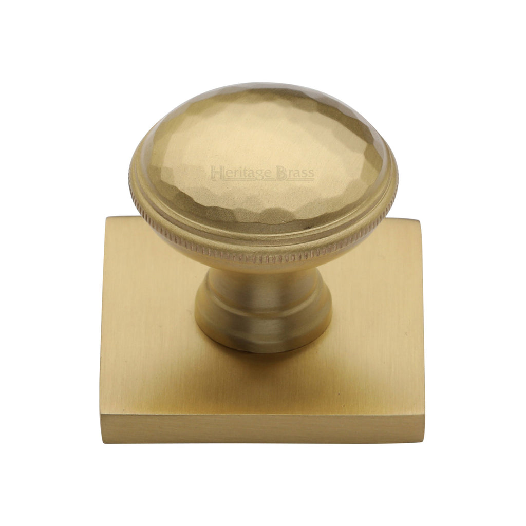 Heritage Brass Cabinet Knob Diamond Cut Design with Square Backplate 32mm Satin Brass finish - SQ4545-SB