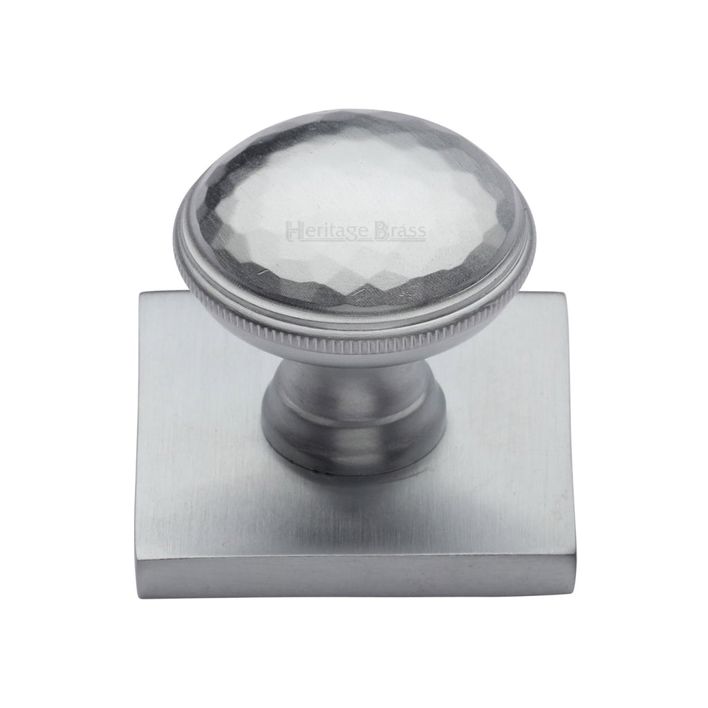 Heritage Brass Cabinet Knob Diamond Cut Design with Square Backplate 32mm Satin Chrome finish - SQ4545-SC