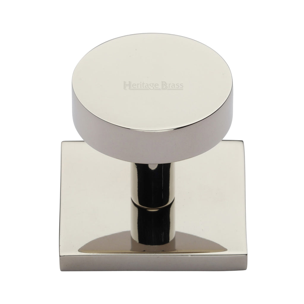 Heritage Brass Cabinet Knob Disc Design with Square Backplate 32mm Polished Nickel - SQ3880-PNF