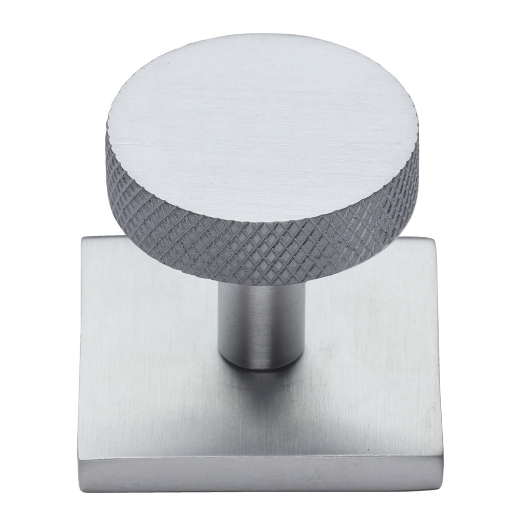 Heritage Brass Cabinet Knob Disc Knurled Design with Square Backplate 32mm Satin Chrome finish - SQ3884-SC