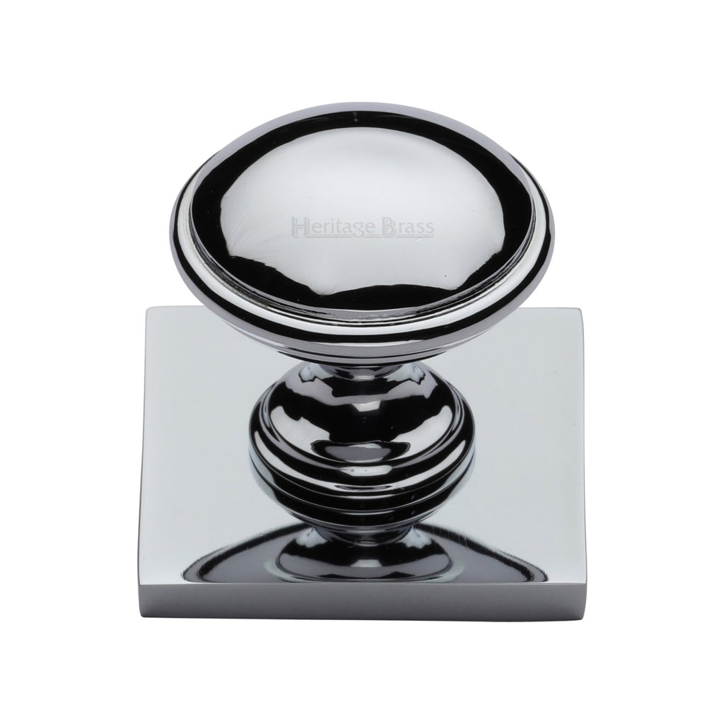Heritage Brass Cabinet Knob Domed Design with Square Backplate 32mm Polished Chrome finish - SQ3950-PC