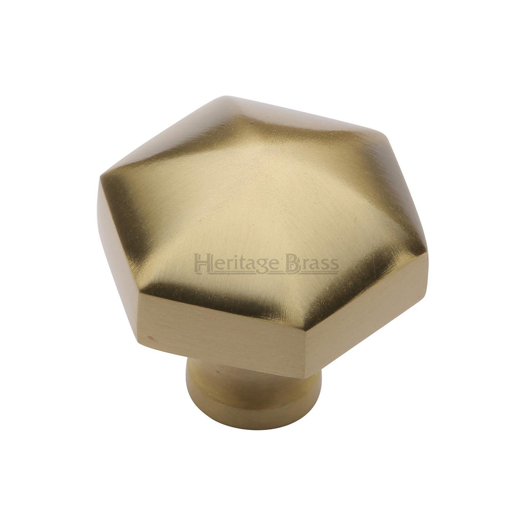 Heritage Brass Cabinet Knob Hexagon Design 32mm Satin Brass finish - C2238-SB