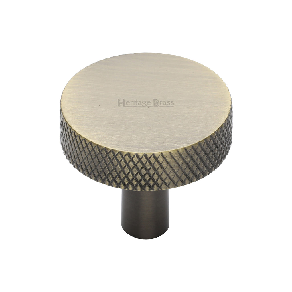 Heritage Brass Cabinet Knob Knurled Disc Design 32mm Antique Brass finish - C3884 32-AT