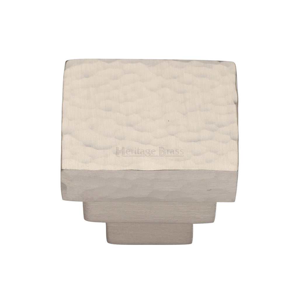 Heritage Brass Cabinet Knob Square Stepped Hammered Design 32mm Satin Nickel finish