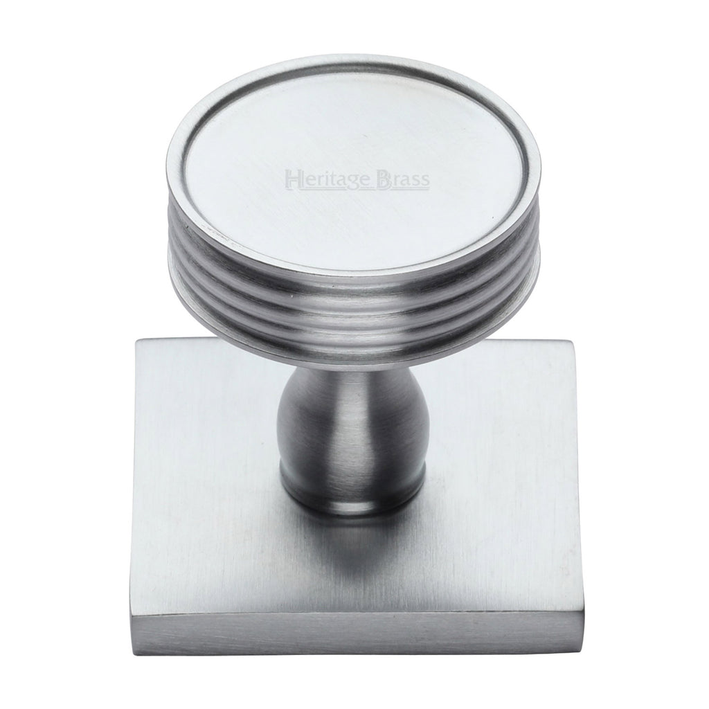 Heritage Brass Cabinet Knob Venetian Design with Square Backplate 32mm Satin Chrome finish - SQ4547-SC