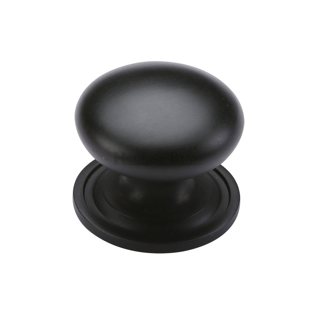 Heritage Brass Cabinet Knob Victorian Round Design with base 48mm Matt Black finish