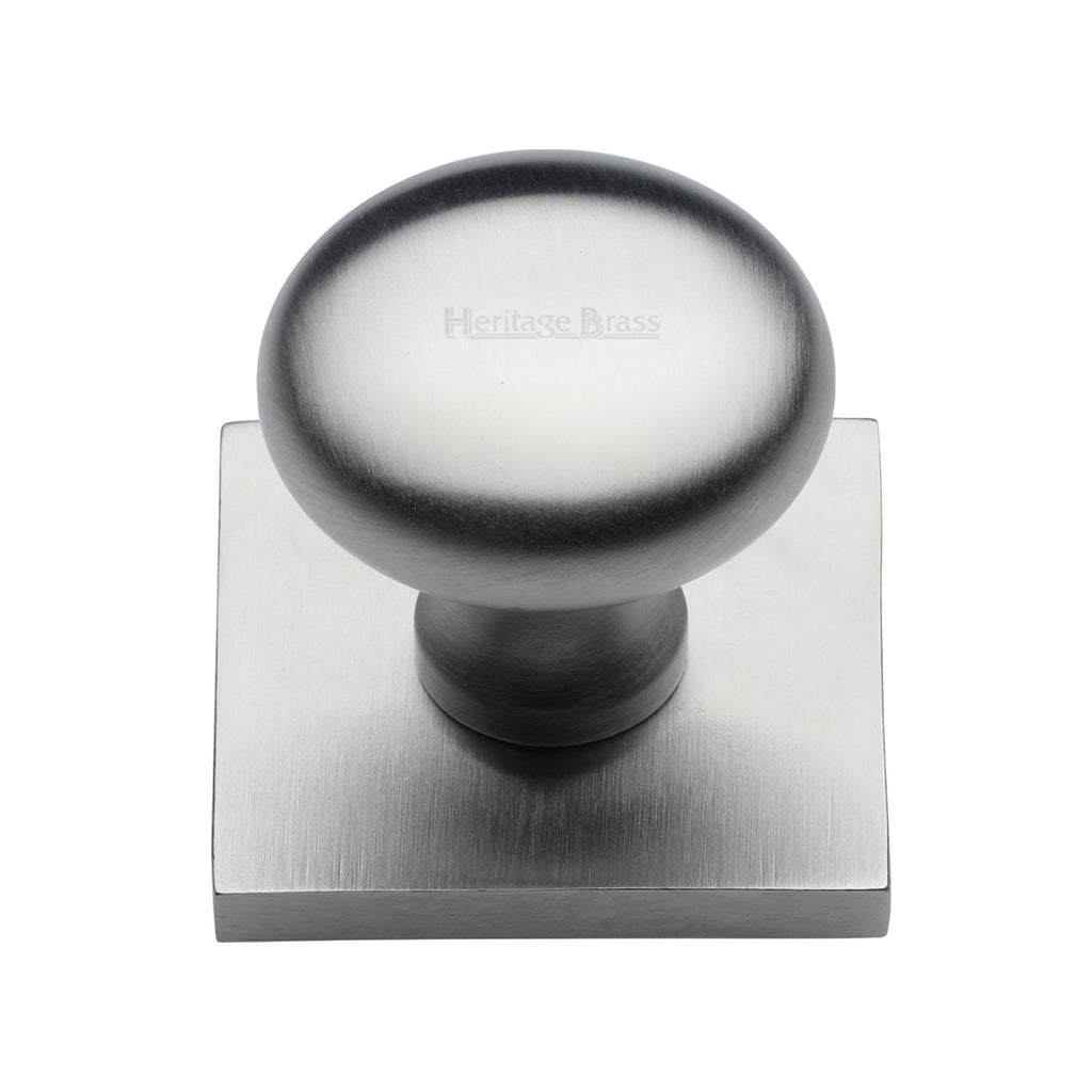 Heritage Brass Cabinet Knob Victorian Round Design with Square Backplate 32mm Satin Chrome finish - SQ113-SC