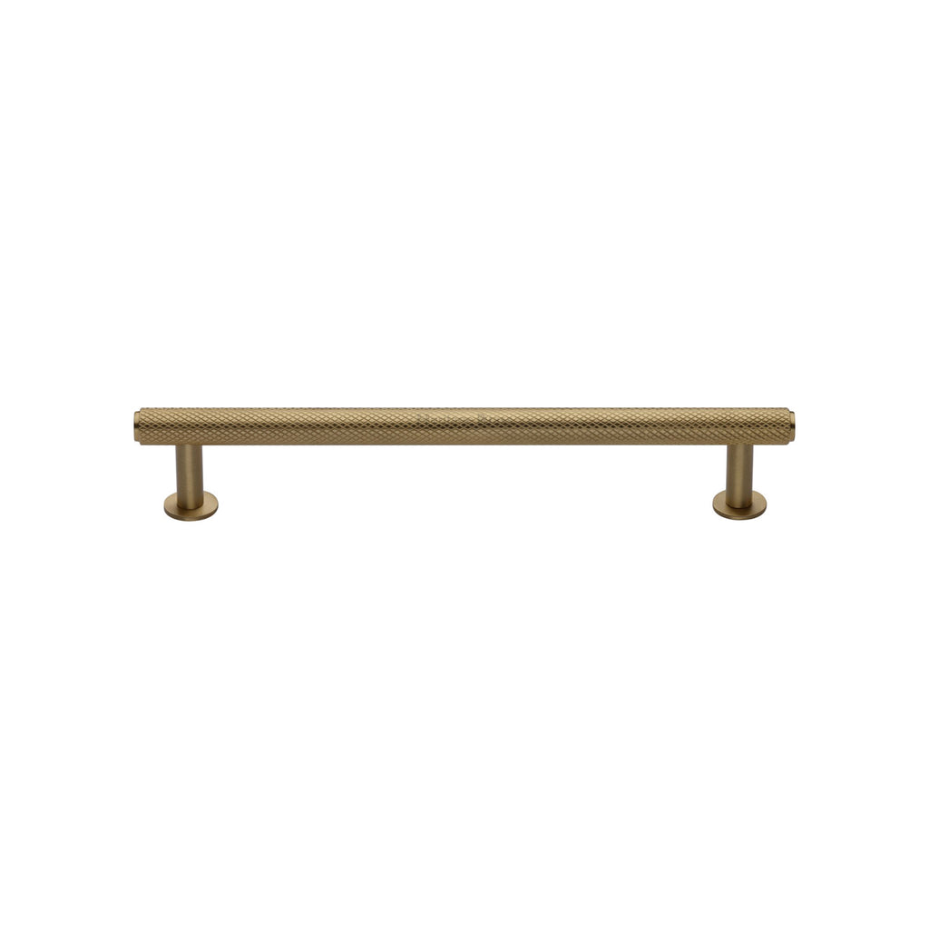 Heritage Brass Cabinet Pull Knurled Design with 16mm Rose 128mm CTC Satin Brass finish - V4459 128-SB