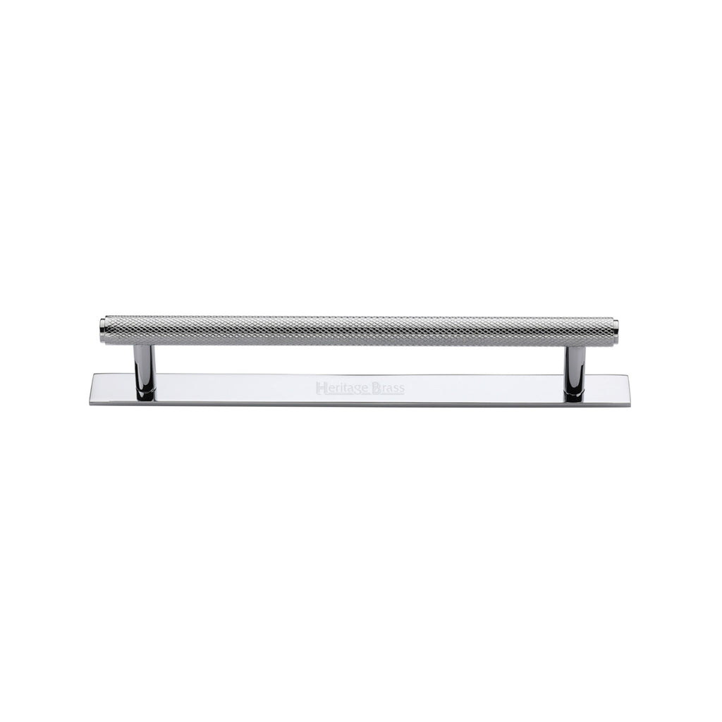 Heritage Brass Cabinet Pull Knurled Design with Plate 128mm CTC Polished Chrome Finish - PL4458 128-PC